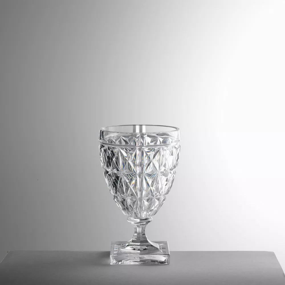 Calice Stella Vino Mario Luca Giusti Materiale: acrilico Dimensioni: H 14 cm, Ø 9,5 cm Capacità: 295 ml Peso: 178 gr Lavaggio a mano
