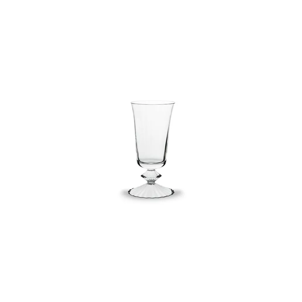 I bicchieri Mille Nuits in cristallo trasparente Baccarat sono caratterizzati da righe che si alternano quasi impercettibili. Percorrendo verticalmente la coppa alta e sottile, questo motivo diffonde con grazia la luce che fluisce dalla sagoma. Il motivo a righe è visibile anche sul piede del bicchiere, dove si irradia a partire dallo stelo. L'elegante frammento di cristallo centrale con taglio a diamante è l'elemento distintivo dei calici Mille Nuits, collocato tra la base della coppa e il piede del bicchiere a unire le due sezioni. Il calice Mille Nuits è disponibile anche sotto forma di flûte da champagne, prodotte in un'ampia gamma di colori vivaci. La collezione Mille Nuits comprende inoltre articoli delle serie Tableware, come bottiglie e piatti, e Home Décor, come lampadari a bracci, lampade e candelabri.