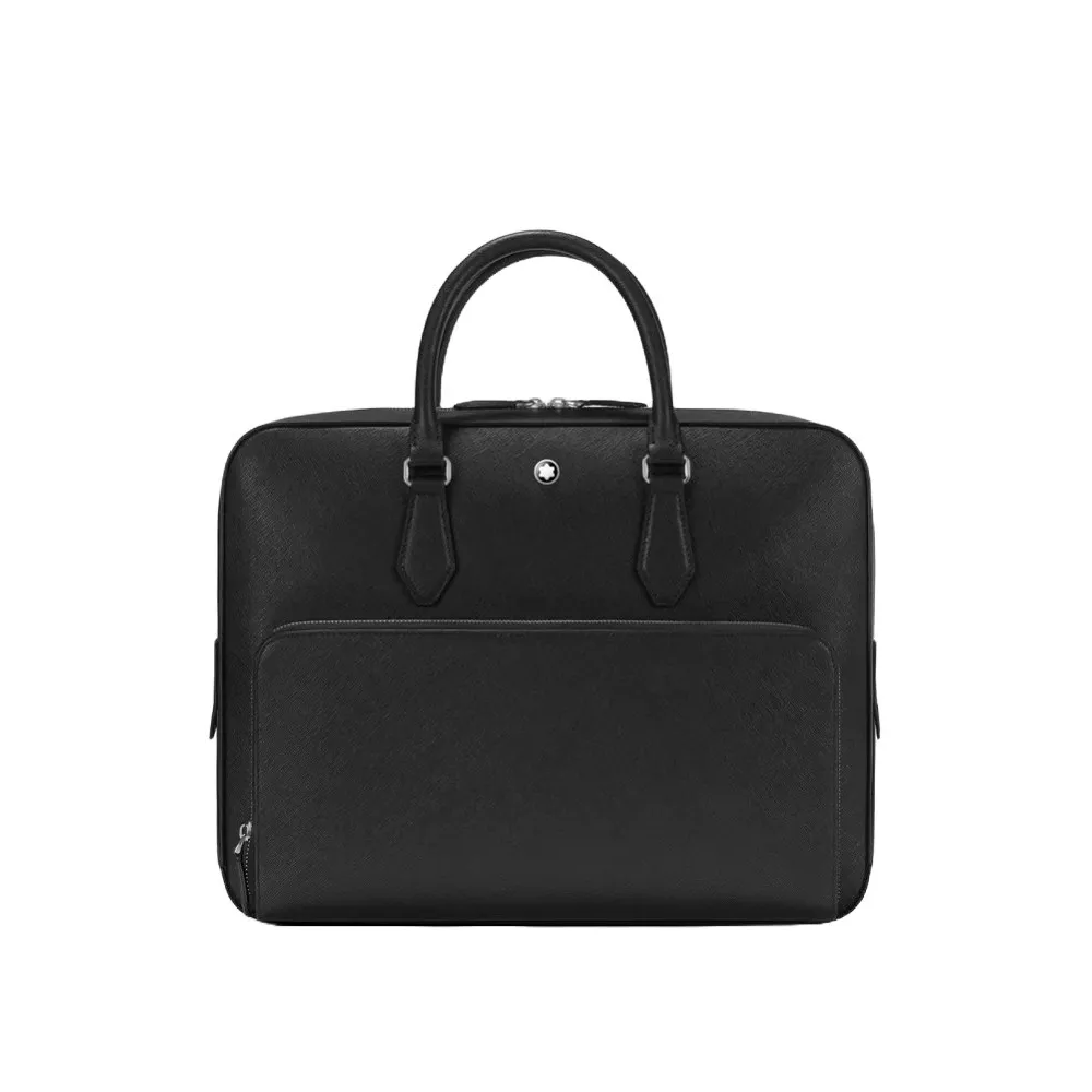 Questa borsa portadocumenti è dotata di un ampio scomparto principale e di una tasca esterna con cerniera, rendendola perfetta per conservare documenti A4, dispositivi elettronici e altri oggetti essenziali per il lavoro. Inoltre, dispone di due tasche per gli strumenti da scrittura. Grazie al suo design modulare, l'accessorio può essere collegato ad altre borse Sartorial. La borsa è realizzata in pelle di alta qualità, che gli conferisce un aspetto elegante e raffinato. Materiale: Pelle bovina pieno fiore stampa Saffiano. Colore: nero. Fodera: Fodera in poliammide e cotone Chiusura: Cerniera Dimensioni: 39 x 9 x 30 cm Codice: MB130271