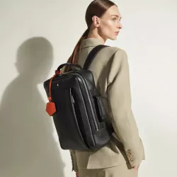 Lo zaino Montblanc Companion in pelle Sartorial nera unisce eleganza contemporanea e funzionalita pensata per la vita quotidiana. Realizzato in pelle bovina pieno fiore con stampa Saffiano, si distingue per la texture raffinata e la resistenza all uso. La costruzione moderna include una tasca frontale con cerniera per un accesso rapido, mentre il comparto principale e organizzato con una sezione imbottita per laptop fino a 13", una tasca aperta e passanti dedicati agli strumenti da scrittura. Sul retro, il sistema satellite consente di agganciarlo facilmente a un trolley, rendendolo ideale per spostamenti quotidiani e brevi viaggi di lavoro.