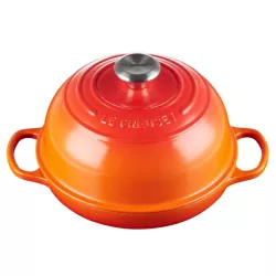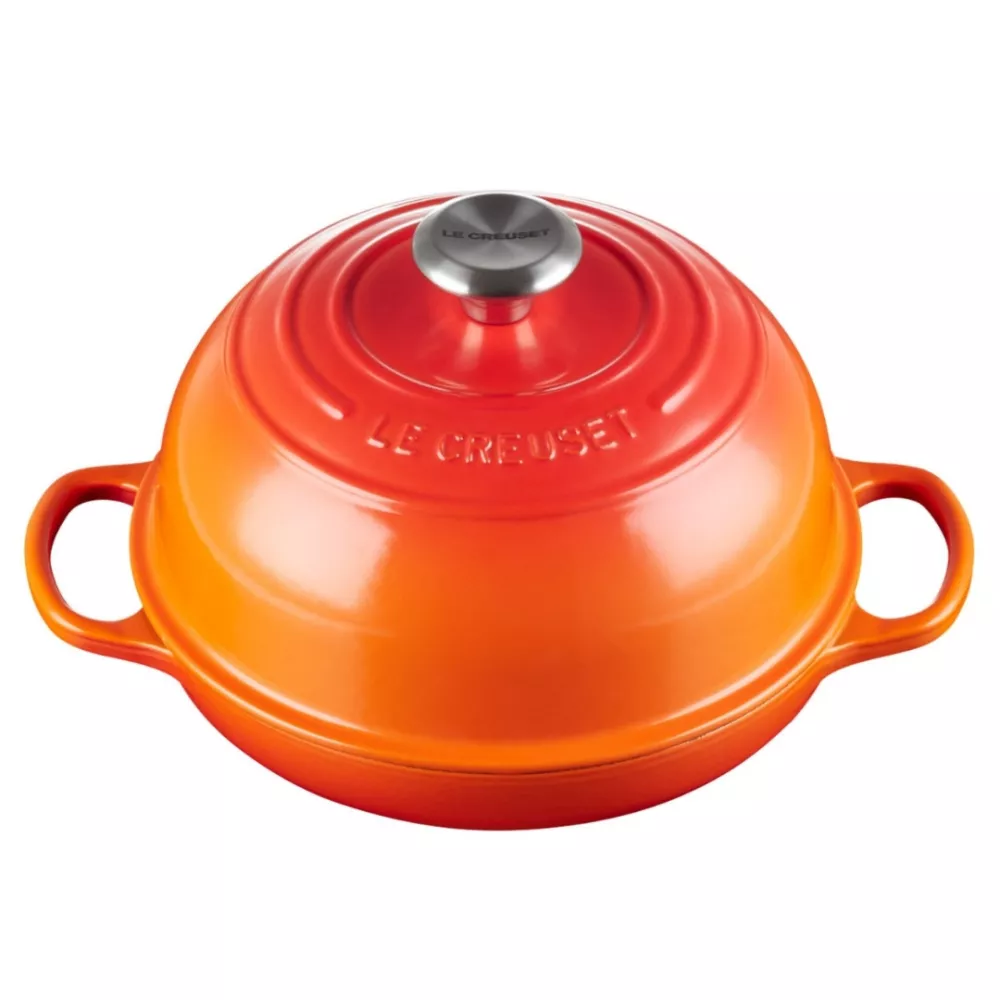 Realizzata nella leggendaria ghisa vetrificata di Le Creuset, questa cocotte è l’alleata perfetta per ottenere un pane artigianale con crosta croccante e interno soffice. Il coperchio a cupola trattiene il vapore per una lievitazione perfetta, mentre la base bassa garantisce una doratura uniforme con il tipico motivo ad anelli Le Creuset.