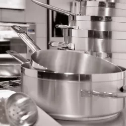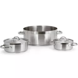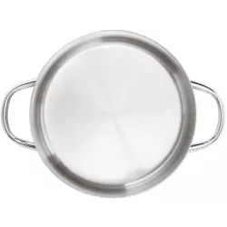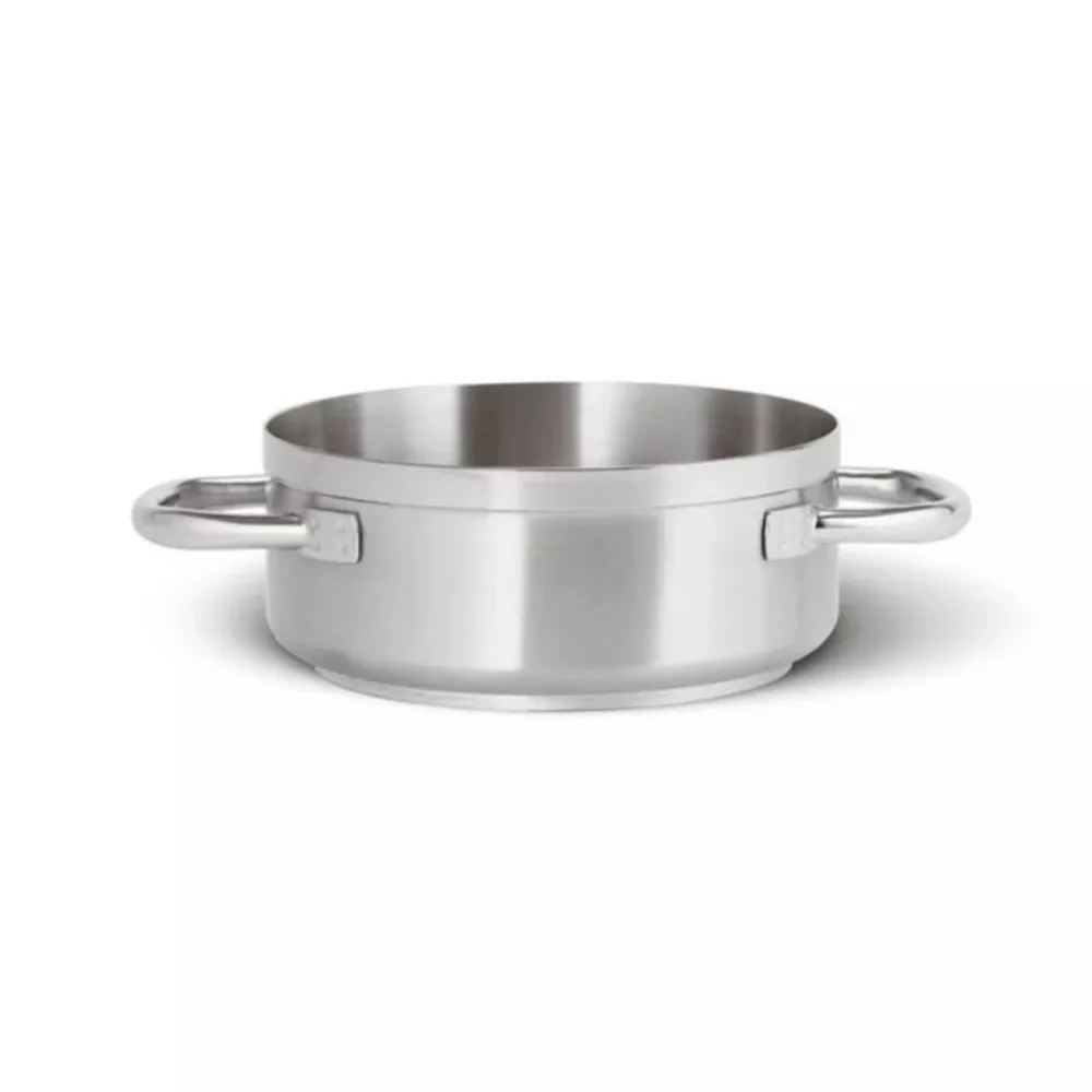 La casseruola bassa a due manici della Serie 1100 Grand Gourmet Paderno e progettata per offrire prestazioni professionali e affidabilita nel tempo. Realizzata in acciaio inox satinato con bordo lucido, unisce funzionalita tecnica e cura estetica. Il fondo termodiffusore sandwich inox alluminio inox assicura una distribuzione uniforme del calore, ottimizzando l energia termica durante la cottura. La manicatura tubolare ergonomica, resistente al calore, e il bordo rinforzato completano una struttura solida e versatile, ideale per ogni tecnica di cottura e per un utilizzo intensivo sia domestico sia professionale.