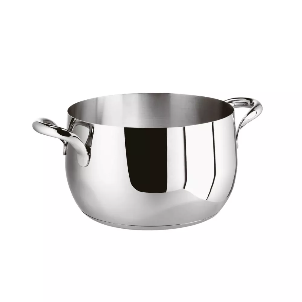 Linee fluide e originali per una casseruola che porta in cucina il calore della tradizione. La finitura a specchio esalta la qualità dell’acciaio inox, donando un tocco sofisticato alla mise-en-place.