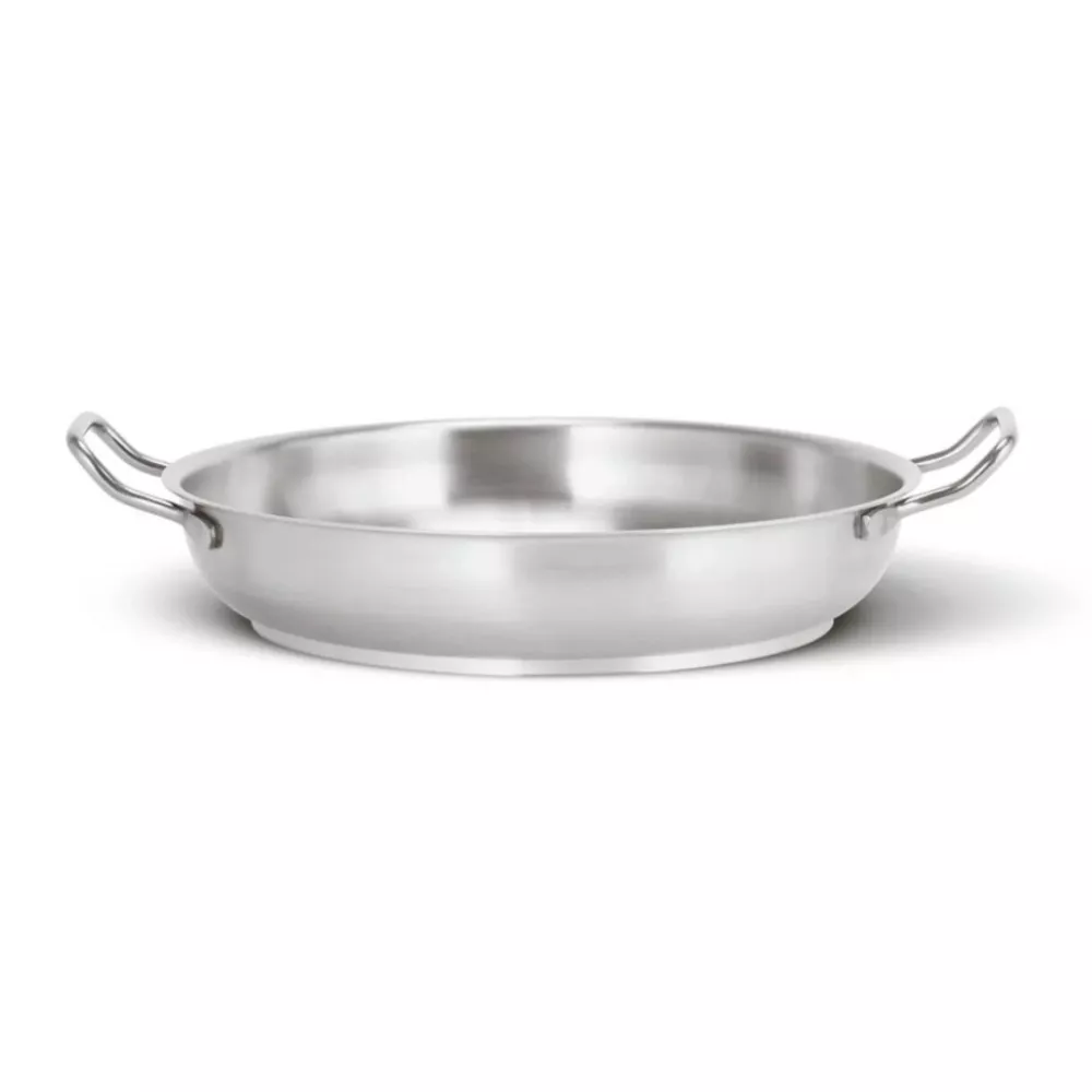 Il tegame basso rotondo della Serie 1100 Grand Gourmet Paderno esprime una sintesi perfetta tra prestazioni professionali e design raffinato. Realizzato in acciaio inox di alta qualita con finitura satinata, garantisce un eccellente controllo della cottura grazie a una distribuzione uniforme del calore. La forma ampia e poco profonda lo rende ideale per salse, riduzioni e preparazioni che richiedono una vasta superficie di contatto. Progettato per resistere ai ritmi delle cucine piu attive, rappresenta un complemento senza tempo capace di elevare ogni preparazione culinaria, sia in ambito domestico sia professionale.