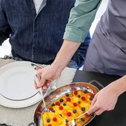 TEGAME OVALE 2 MANIGLIE 35 CM, HOME CHEF INOX & ALLUMINIO 51138-35 - SAMBONET La combinazione dell'elevata capacità di conduzione termica dell'alluminio con la straordinaria resistenza dell'acciaio inossidabile rende Sambonet Home Chef la scelta ideale per gli appassionati di cucina gourmet. Marchio: Sambonet Collezione: Home Chef Materiale: Alluminio, Acciaio Numero di pezzi nel set: 1 Numero di articolo: 51138-35 Anno di introduzione: 2022 Adatto al forno: true Forma dell'articolo: Ovale