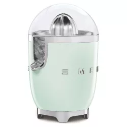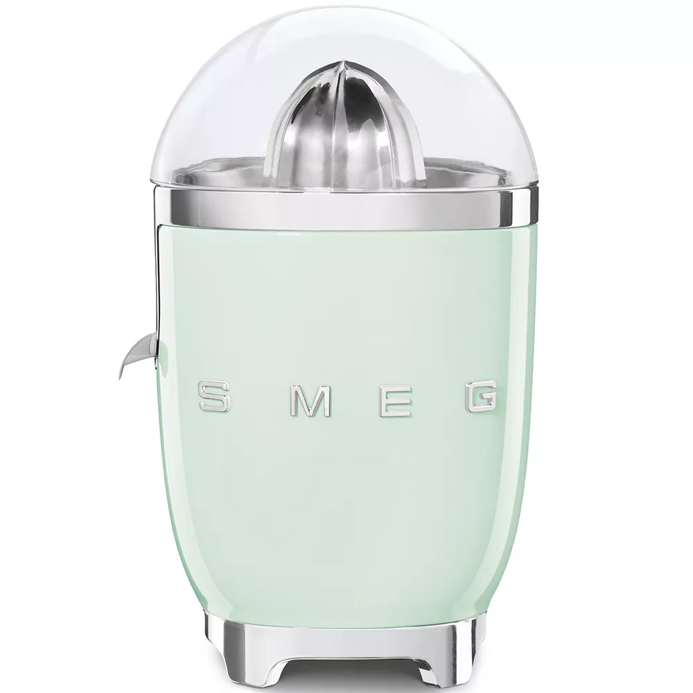Lo Spremiagrumi CJF01 della collezione 50s Style di Smeg combina estetica iconica e funzionalità quotidiana in un piccolo elettrodomestico dal carattere deciso. Il corpo in alluminio pressofuso garantisce solidità, mentre filtro, cono e beccuccio in acciaio inox assicurano resistenza e igiene. Dotato di motore da 70 W con sensore on off integrato, si attiva con una semplice pressione del frutto. Il beccuccio anti goccia evita fuoriuscite indesiderate, mantenendo il piano cucina sempre pulito. Facile da smontare e pulire, include coperchio protettivo antipolvere. Un oggetto di design che unisce prestazioni e stile, perfetto anche come idea regalo di design per chi ama iniziare la giornata con energia.