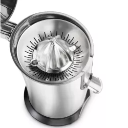 SPREMIAGRUMI CP330, 3560, CASO GERMANY Design elegante con cassa in acciaio inox Cono spremiagrumi universale in acciaio inox di alta qualità: per tutti i tipi di agrumi, dal limone al pompelmo con un'elevata resa di succo Facile da maneggiare senza sforzo grazie al braccio a leva Non sporca o gocciola grazie al beccuccio Filtro in acciaio inox di alta qualità Manico soft touch molto facile da pulire, parti rimovibili e lavabili in lavastoviglie, avvio automatico Motore ultra silenzioso Piedini a ventosa per una maggiore stabilità