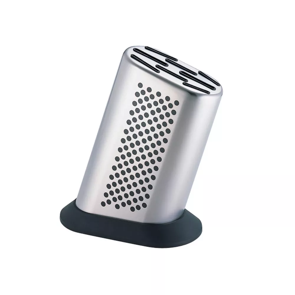 Ceppo portacoltelli elegante e funzionale in acciaio inox 18/10, progettato per ospitare fino a 8 coltelli Global. Il design punteggiato iconico della linea garantisce stile e praticità, mentre la base antiscivolo removibile consente una pulizia facile e sicura.