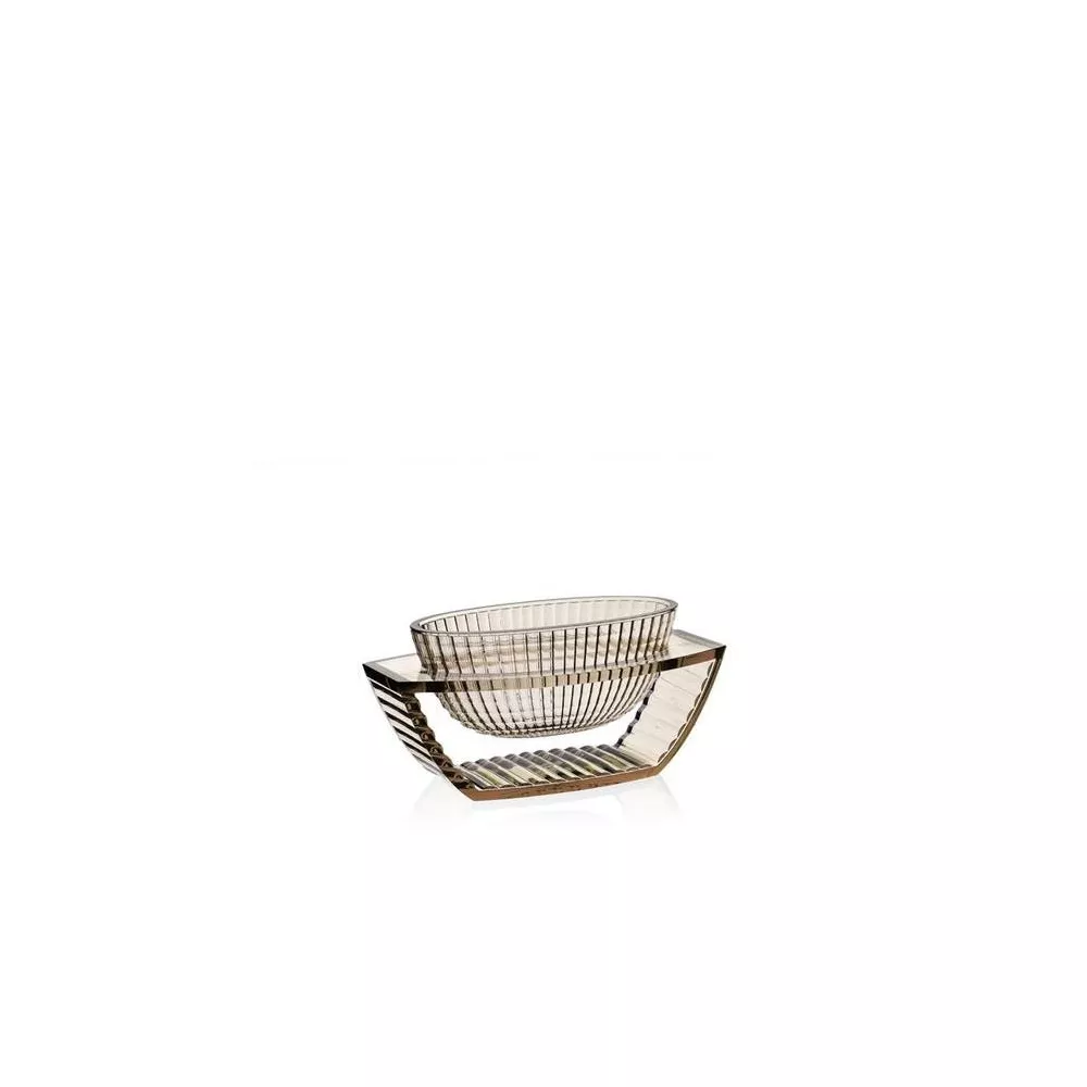 CENTROTAVOLA U SHINE, 1218 - KARTELL Eugeni Quitllet ha creato una collezione esclusiva di vasi decorativi in PMMA trasparente per Kartell. La linea comprende un vaso e un centrotavola che si distinguono per le loro eleganti geometrie ispirate allo stile déco. Ciò che rende questi due vasi veramente speciali è la finitura del materiale plastico, così sofisticata da conferire loro l'aspetto di autentici oggetti di cristallo. Materiale: PMMA trasparente o colorato in massa Dimensioni: L 29 x P 15 cm Altezza: 14 cm Peso Peso: 1,05 kg