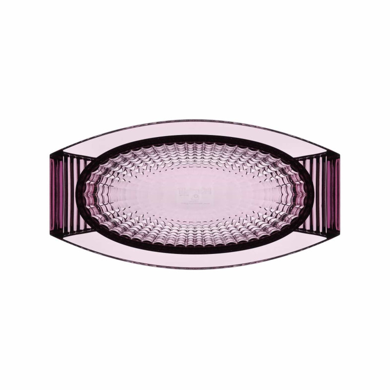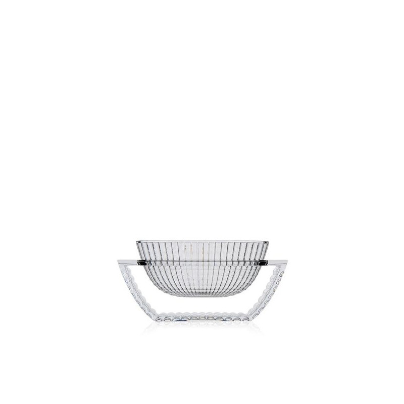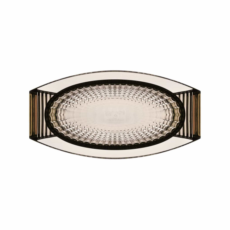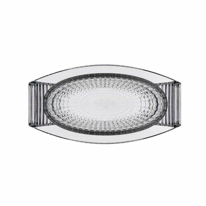 CENTROTAVOLA U SHINE, 1218 - KARTELL Eugeni Quitllet ha creato una collezione esclusiva di vasi decorativi in PMMA trasparente per Kartell. La linea comprende un vaso e un centrotavola che si distinguono per le loro eleganti geometrie ispirate allo stile déco. Ciò che rende questi due vasi veramente speciali è la finitura del materiale plastico, così sofisticata da conferire loro l'aspetto di autentici oggetti di cristallo. Materiale: PMMA trasparente o colorato in massa Dimensioni: L 29 x P 15 cm Altezza: 14 cm Peso Peso: 1,05 kg