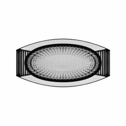 CENTROTAVOLA U SHINE, 1218 - KARTELL Eugeni Quitllet ha creato una collezione esclusiva di vasi decorativi in PMMA trasparente per Kartell. La linea comprende un vaso e un centrotavola che si distinguono per le loro eleganti geometrie ispirate allo stile déco. Ciò che rende questi due vasi veramente speciali è la finitura del materiale plastico, così sofisticata da conferire loro l'aspetto di autentici oggetti di cristallo. Materiale: PMMA trasparente o colorato in massa Dimensioni: L 29 x P 15 cm Altezza: 14 cm Peso Peso: 1,05 kg