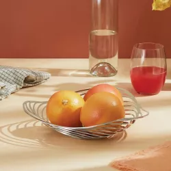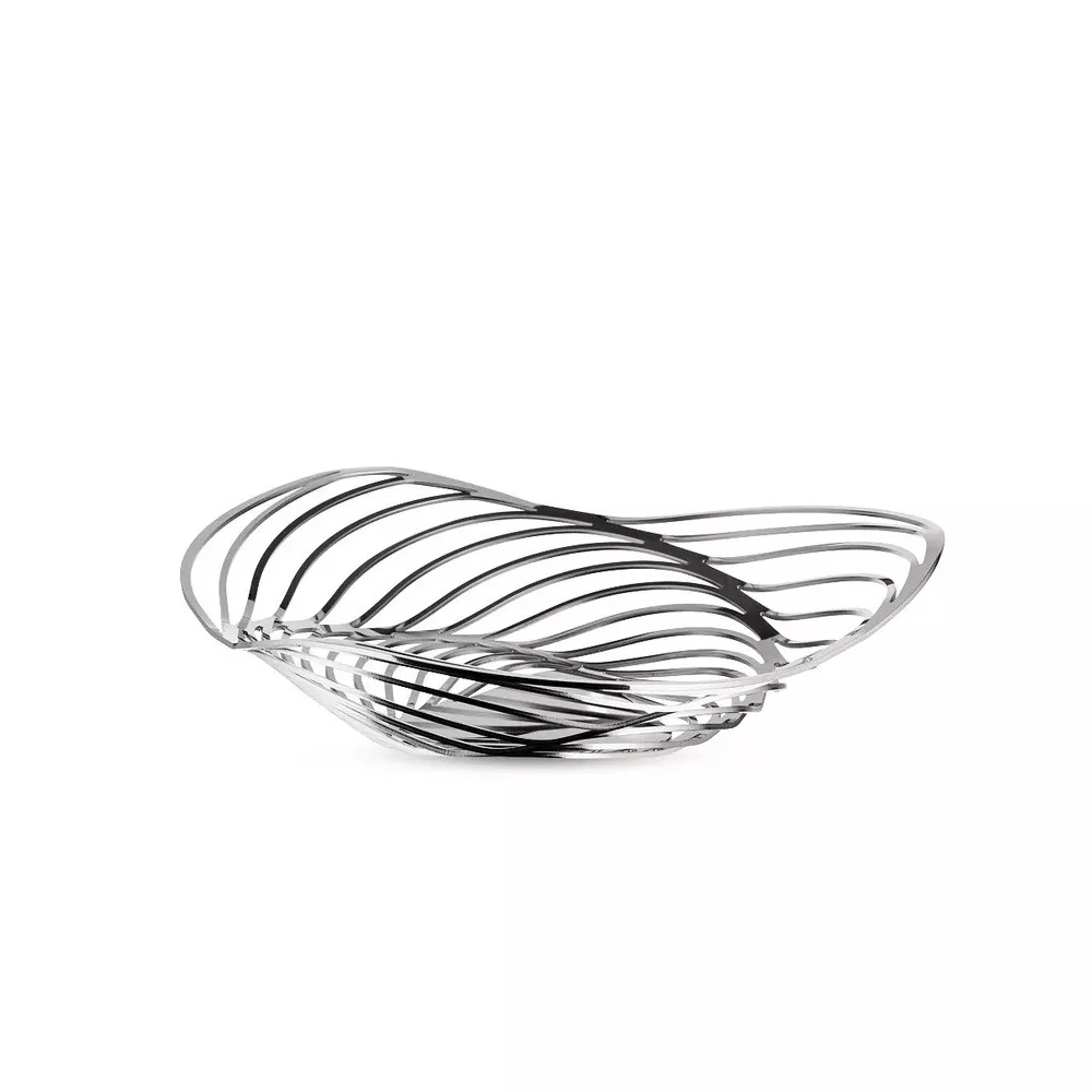 CESTINO PANE, TRINITY AC02 - ALESSI Trinity è un cestino progettato a partire da una semplice forma geometrica che viene sviluppata, come se fosse un vortice, per formare una struttura concentrica elegante. Il desiderio di Adam Cornish è quello di ricreare l'aspetto di un elemento naturale attraverso moderni processi di produzione industriale. La forma dinamica del cestino "Trinity" è ottenuta mediante un processo di taglio al laser della lamiera d'acciaio, successivamente modellata con un'operazione meccanica. Cestino realizzato in acciaio