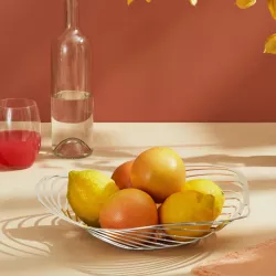 FRUTTIERA 33 CM, TRINITY ACO03 - ALESSI La fruttiera Trinity, disegnata da Adam Cornish, è una semplice forma geometrica che viene sviluppata, come fosse un vortice, fino a formare un’elegante struttura concentrica. Realizzata in acciaio inossidabile, la fruttiera ricrea l'aspetto di un elemento naturale attraverso i moderni processi di produzione industriale. La forma originale e le dimensioni capienti la rendono adatta a essere utilizzata anche come elegante centrotavola. Codice : ACO03 Diametro : 33 cm Altezza : 8 cm