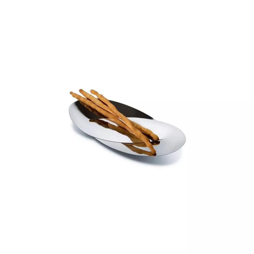 ALESSI OCTAVE “Octave” di Abi Alice è realizzato semplicemente tagliando, piegando e saldando, in più punti, una lastra d’acciaio inossidabile 18/10. Si offre come un elegante cestino adatto a portare in tavola pane o grissini. La finitura lucida esalta la sofisticata semplicità dell’oggetto. codice: ABI05 altezza : 4.5 cm lunghezza: 41.5 cm larghezza: 17.5 cm