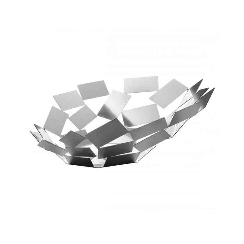 CENTRO TAVOLA 41 CM, LA STANZA DELLO SCIROCCO MT03 - ALESSI La Stanza dello Scirocco è una famiglia di oggetti, per diversi ambienti come la cucina e il soggiorno, che nasce attorno all’atmosfera astratta e immobile di un luogo magico: la stanza dove si è costretti a stare per ripararsi dall’afa, nelle vecchie grandi case di campagna in Sicilia, aspettando che lo scirocco si plachi. Ne è risultata una collezione di oggetti dalle geometrie aritmiche, composti da piccole schegge di dimensioni diverse, unite fra loro per punti in equilibrio instabile come fotogrammi di carte in volo e ombre in leggero movimento.” (Mario Trimarchi) Centrotavola in acciaio inossidabile 18/10 lucido. Codice : MT03 dimensioni: 41.6 cm x 37.5 cm - h. 15 cm