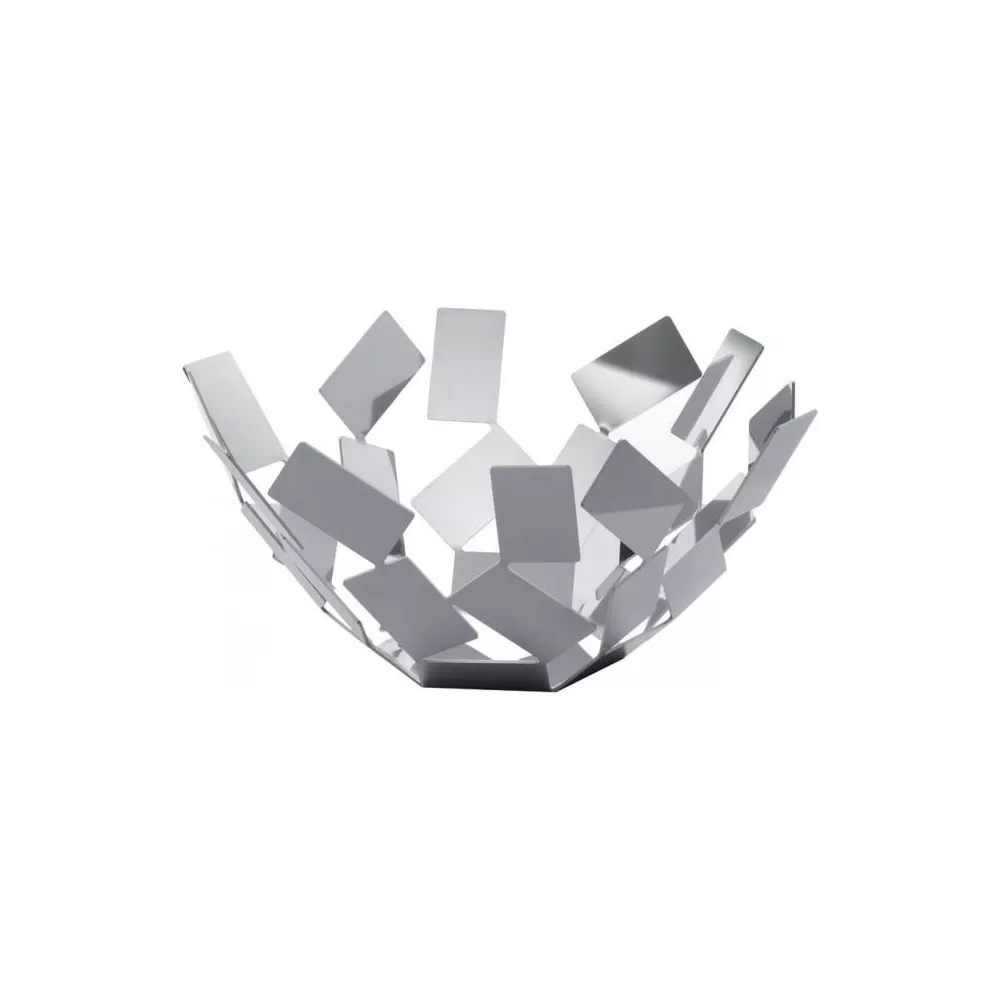 Alessi Fruttiera - La Stanza dello Scirocco Codice: MT02 L'atmosfera magica della Stanza dello Scirocco ha ispirato il disegno dell'omonima fruttiera, un movimento di tessere d'acciaio che lascia spazio all'immaginazione. La Stanza dello Scirocco è una grande sala, presente nelle case di campagna siciliane, dove si è costretti a cercare rifugio durante le giornate in cui l'omonimo vento soffia senza tregua. Disegnata da Mario Trimarchi, la collezione la Stanza dello Scirocco nasce dal ricordo delle interminabili giornate trascorse in quell'atmosfera senza tempo. Oggetti per la tavola e la cucina dalle geometrie irregolari, come questa fruttiera composta da tessere che si ripetono in un gioco di luci e ombre. Larghezza (cm): 27.30 Altezza (cm): 13.00 Lunghezza (cm): 27.30