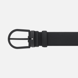 Fibbia a ferro di cavallo finitura caucciù nero. Cinghia auto-regolabile, 3,5 cm x 120 cm, in pelle nera effetto caucciù. Pensata per un look audaci. Ident No. MB129431 Materiale Calf-skin leather Cinturino Pelle bovina nera effetto caucciù Pratico meccanismo per la regolazione della lunghezza Forma: Ferro di cavallo Emblema Montblanc sul passante in metallo Colore: Nero