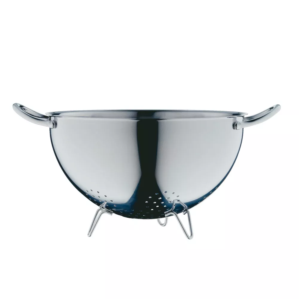 SCOLAPASTA 24 CM, 06.4617.6040 - WMF Lo scolapasta WMF Gourmet è un compagno indispensabile in cucina. Che si tratti di sciacquare frutta e verdura o scolare la pasta, la sua ampia struttura a fori garantisce un utilizzo sicuro e veloce. Ben progettato, realizzato in acciaio inossidabile e che presenta una base rialzata stabile e maniglie laterali ergonomiche, per una manipolazione sicura e facile. Realizzato in Cromargan® di alta qualità, questo colino presenta una splendida finitura lucida ed è lavabile in lavastoviglie per una pulizia senza sforzo. SKU: 0646176040