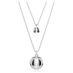 l design presenta due catene, ciascuna con un motivo a cupola a forma di meteora, splendidamente impreziosito da un pavé a neve di cristalli Cry rotondi di diverse dimensioni. Per un tocco di versatilità in più, il pendente può essere invertito, rivelando un alone di cristalli attorno al motivo più grande ed un singolo cristallo al centro del motivo più piccolo. Inoltre, le due catenine si possono sganciare dando vita a due collane separate. Collezione: Meteora Lunghezza (minima - massima): 38 - 45 cm Dimensione decorazione: 2.2 x 1.6 cm Materiale: Cristalli, Placcato color oro / oro rosa / rodio Colore: Bianco Tipo di fermaglio: Moschettone