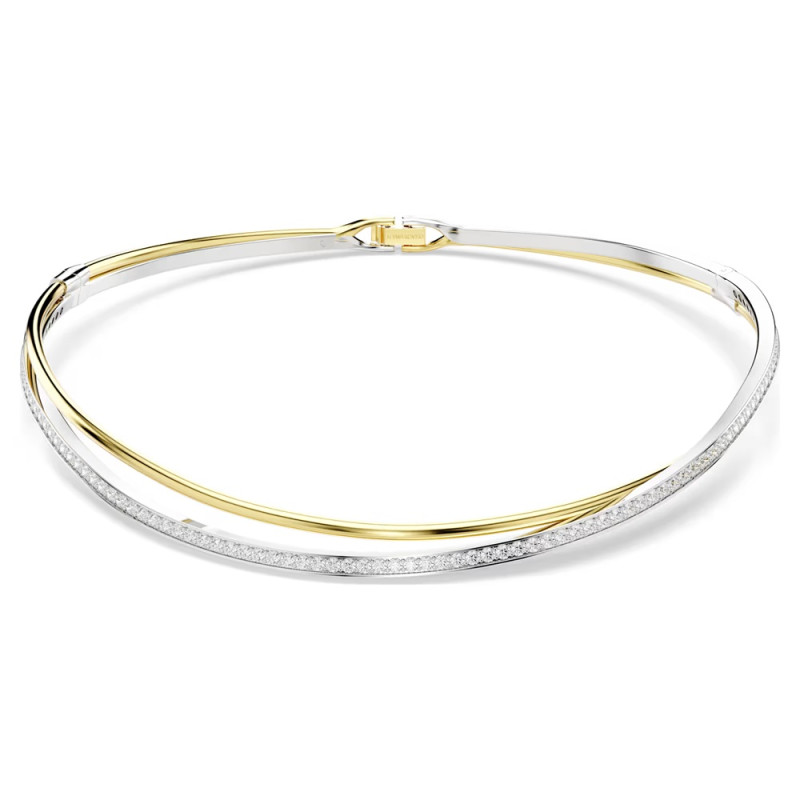 Collezione: Hyperbola Lunghezza: S: 32.3 cm / M: 35.1 cm Ampiezza: 1 cm Diametri interni: S:11 x 9.5 cm / M: 12 x 10.3 cm Distanza apertura: 10 cm Materiale: Mix di placcature, Zirconia Colore: Bianco Tipo di fermaglio: Fermaglio ripiegabile su se stesso