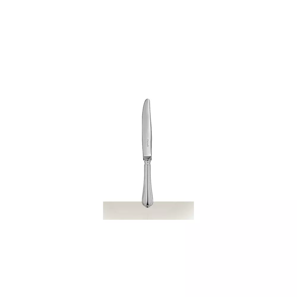 Christofle Spatours coltello frutta/dessert Il coltello da dessert in lega argentata nel modello Spatours può essere abbinato a un cucchiaio e una forchetta da dessert da utilizzare con dessert, insalate o antipasti. Riflettendo le radici del 19 ° secolo, la collezione Spatours, disponibile nel primo catalogo Christofle nel 1862, presenta curve generose, tacchi decorativi e una cresta arrotondata e slanciata comune in stile Luigi XV. MATERIALE • lega argentata DIMENSIONI •: 19,5 cm