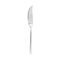 Sambonet Collezione Giò Ponti Progettato nel 1939 dall'architetto e designer milanese Gio Ponti (1891-1979), l'omonimo servizio è caratterizzato da un originale equilibrio tra funzionalità e forma. Coltello da pesce. Codice: 52560-50 Materiale: acciaio inox 18/10 Manutenzione: lavabile in lavastoviglie.