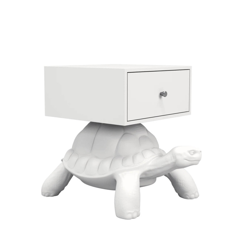 Qeeboo introduce un nuovo elemento alla collezione Turtle Carry, il Turtle Carry Bed Table. Portando un piccolo tavolo con un cassetto sul suo carapace, può essere il compagno perfetto accanto al letto. Materiale: Polietilene riciclabile Dimensioni: 40 x 58 x 48 cm Peso: 10 kg