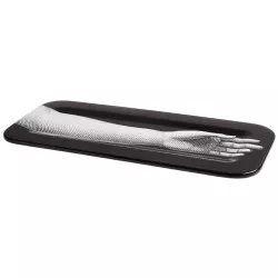 Il Vassoio Mano di Fornasetti è un’opera iconica che trasforma un oggetto funzionale in un complemento d’arredo dal fascino surreale. Realizzato in metallo serigrafato e laccato a mano nei toni del bianco e nero, riproduce l’inconfondibile immaginario dell’Atelier, dove arte e quotidianità si incontrano. Perfetto come elemento decorativo o per il servizio, questo vassoio diventa un dettaglio di stile che arricchisce qualsiasi ambiente. Ogni creazione Fornasetti è unica, con piccole variazioni dovute alla lavorazione artigianale che ne garantiscono autenticità e pregio.