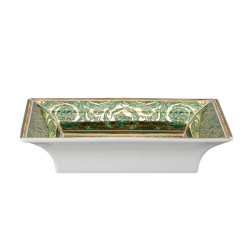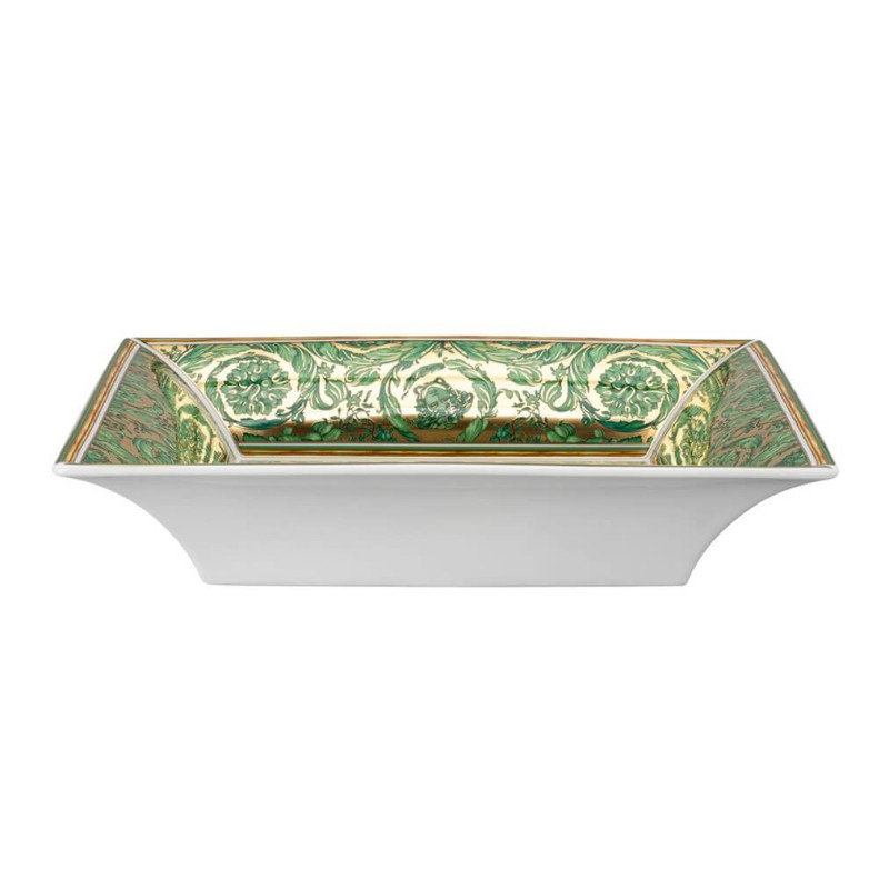 La collezione festiva Medusa Garland 2023 di Rosenthal & Versace si distingue per l'accostamento di rosso e verde ai toni dell'oro. Piante e fiori barocchi sontuosi rivestono un ruolo centrale in questa linea, avvolgendo la gloriosa figura di Medusa, iconico emblema di Versace. Ornamenti delicati con medaglioni raffiguranti Medusa conferiscono un tocco vellutato alla nuova collezione, mentre tazze e altri elementi decorativi si presentano in sfumature di verde o rosso.
