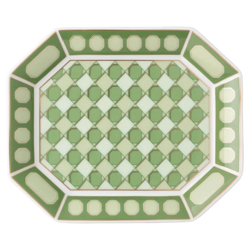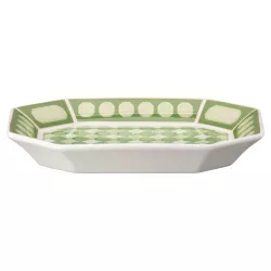 Un tocco di classe per la tua tavola: il vassoio Signum è realizzato in pregiata porcellana e presenta la caratteristica forma ottagonale di Swarovski, impreziosita da un raffinato motivo geometrico in verde. Perfetto per aggiungere colore ed eleganza a qualsiasi occasione speciale.