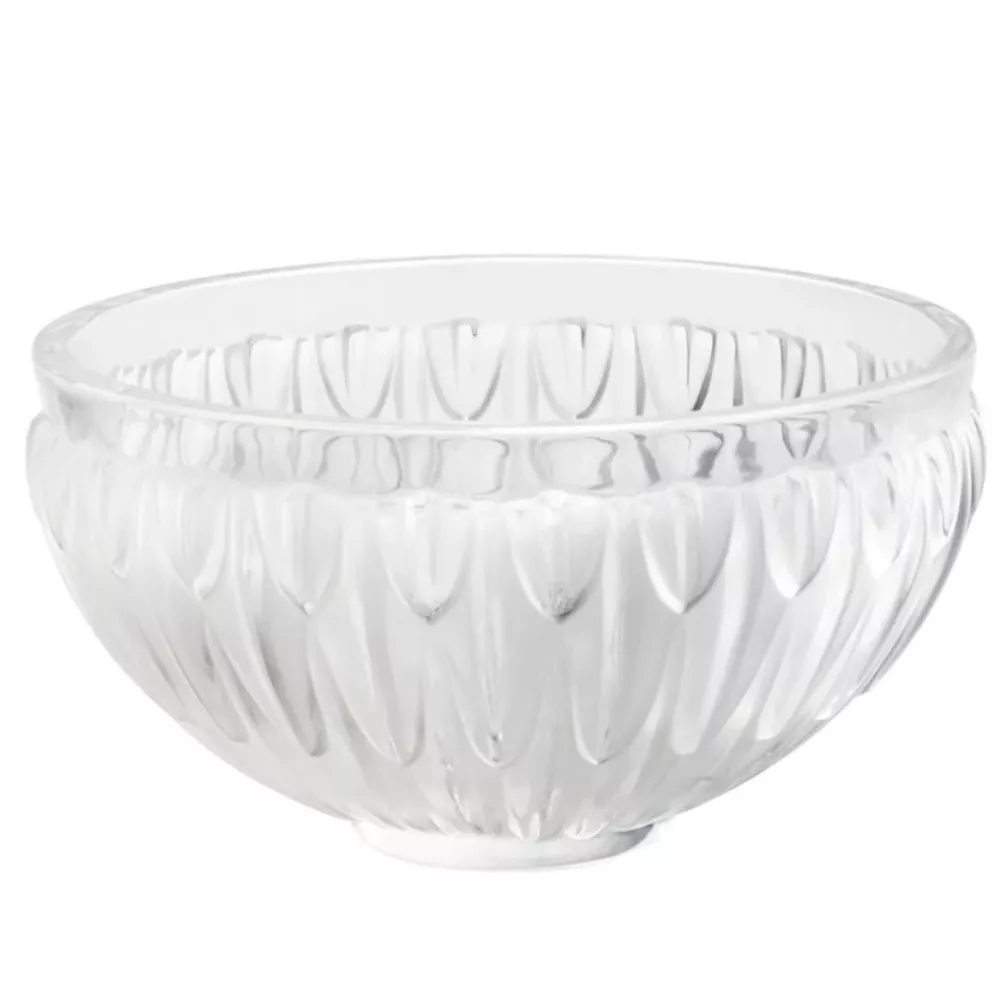 Un giro di piume finemente scolpite avvolge la Coppa Plumes di Lalique, trasformando il cristallo in una danza di luce e poesia. Realizzata in cristallo trasparente satinato e lucidato, questa creazione artigianale esalta la purezza dei riflessi e la morbidezza delle forme, invitando al tocco. Un oggetto decorativo di raffinata eleganza che racchiude l’inconfondibile stile e la maestria francese del marchio.