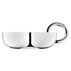 La ciotola piccola in lega argentata della collezione Vertigo con manico singolo è perfetta per servire snack come noci, olive o caramelle, oppure può essere utilizzata come svuotatasche. Il caratteristico motivo Vertigo, un anello spesso e leggermente asimmetrico, spesso posizionato in modo giocoso, si ritrova in ogni pezzo della collezione firmata Andrée Putman. Questo oggetto elegante e contemporaneo è ideale per aperitivi, aggiungendo un tocco di raffinatezza a qualsiasi ambiente.