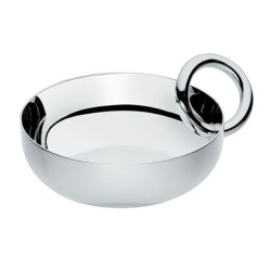 Christofle Vertigo coppetta in argento placcato, grande La grande coppetta Vertigo argentata con manico singolo è perfetta per servire spuntini come noci, olive o caramelle o può essere usata come catenella per gingillo. Il motivo audace di Vertigo - un anello sottilmente asimmetrico e spesso spesso posto giocosamente di sbieco - si può trovare su ogni pezzo della collezione disegnata da Andrée Putman. Vertigo ha un forte emblema: un anello, il cui design sensuale e sottilmente asimmetrico si trova su ogni pezzo. MATERIALE • Argento placcato DIMENSIONI • Ø: 17 cm