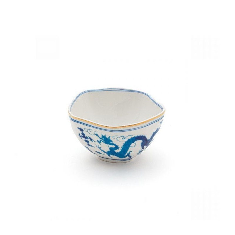 CIOTOLA 12 CM, DRAGON ON ACID, 11272 - SELETTI La ciotolina Classics on Acid è un piatto dalla decorazione classica con un drago che ha un aspetto classico ma con un elemento sorprendente per gli amanti delle feste e gli eclettici. Questi piatti possono essere utilizzati come decorazione per le pareti o come parte dell'arredo della tavola. Le forme e i modelli tradizionali di diverse epoche e culture sono stati deliberatamente distorti, rendendoli un'aggiunta perfetta per ogni occasione speciale. Il marchio italiano Seletti ci porta in un universo anticonformista con un design Figurativo e Pop Art, dove la creatività è la parola d'ordine. Materiale: porcellana Dimensioni: diametro 12 x h 5 cm Design: Diesel Living with Seletti