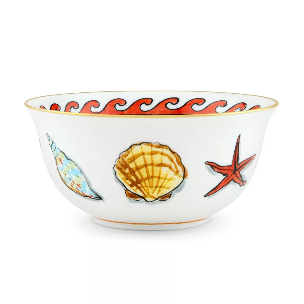 Un'autentica opera d'arte in porcellana, la calotta della collezione Il Viaggio di Nettuno incanta con motivi marini come conchiglie, onde e stelle marine. Il decoro White, firmato dal designer Luke Edward Hall, arricchisce ogni tavola con un tocco mitologico e raffinato. Perfetta da sola o in abbinamento agli altri elementi della collezione, è l’ideale per chi cerca un elemento decorativo ricco di personalità e bellezza narrativa.