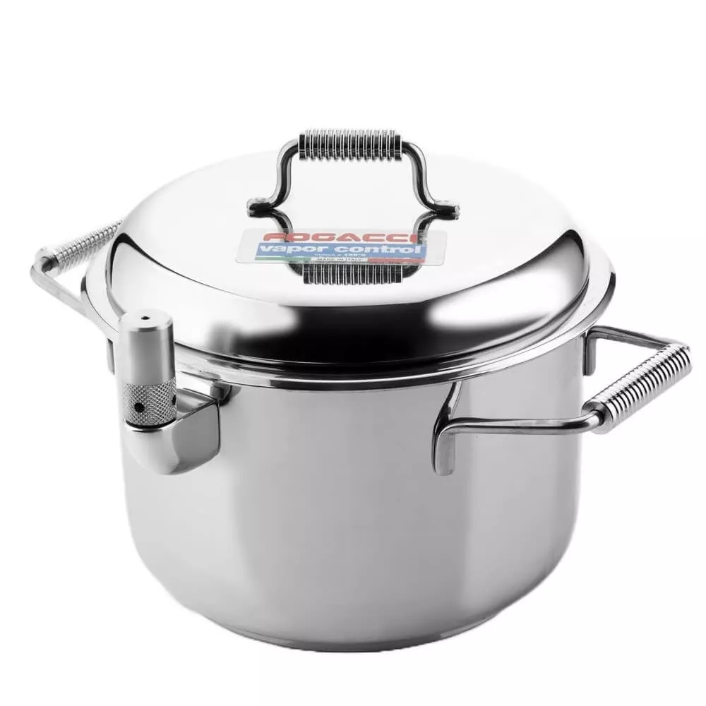 La pentola a pressione Fogacci Vapor Control e progettata per una **cottura sana, delicata e controllata**, grazie all’innovativo sistema brevettato Vapor Control. La struttura a **doppia parete in acciaio inox 18/10** crea una camera interna dove si forma il vapore, regolato da una speciale valvola a gravita che mantiene **temperatura e umidita costanti** senza mai superare i 105 c. Questo metodo consente di cuocere gli alimenti senza contatto diretto con la fonte di calore, preservando **sapori autentici, principi nutrizionali e valori alimentari**. Una soluzione ideale per chi cerca prestazioni elevate e rispetto delle materie prime, con la qualita costruttiva Fogacci.