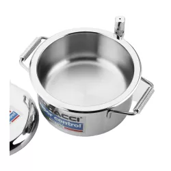 CASSERUOLA FONDA A VAPORE 26 CM, VAPOR CONTROL 2000-842 - FOGACCI Il sistema brevettato di FOGACCI® vapor control® prevede l'utilizzo di una doppia parete in acciaio inox 18/10 che crea uno spazio vuoto dove si forma il vapore. Grazie ad una speciale valvola, la quantità di vapore e la temperatura all'interno della pentola sono regolate per cuocere gli alimenti in modo delicato e uniforme, senza il rischio di bruciarli. Questo metodo di cottura consente di cuocere gli alimenti senza contatto diretto con la fonte di calore, mantenendo una temperatura costante che non supera mai i 105°C. In questo modo, gli alimenti sono preservati dalle alterazioni del calore e si conservano inalterati i sapori, i principi nutrizionali e i valori nutrizionali. FOGACCI® vapor control® è la scelta ideale per una cucina sana e gustosa, dove la qualità degli alimenti è sempre al primo posto. Casseruola fonda con coperchio cm 26, altezza cm 14, lt 6. - costruita interamente in acciaio inox 18/10 ad alto spessore; - il calore del vapore é mantenuto costante dalla valvola di controllo a gravitá; - le maniglie sono atermiche e di facile presa; - il fondo ha uno strato diffusore in alluminio, protetto da una capsula in acciaio inox; - il coperchio ha un'ampia superficie condensante e contribuisce a mantenere costante il grado di umiditá dei cibi.