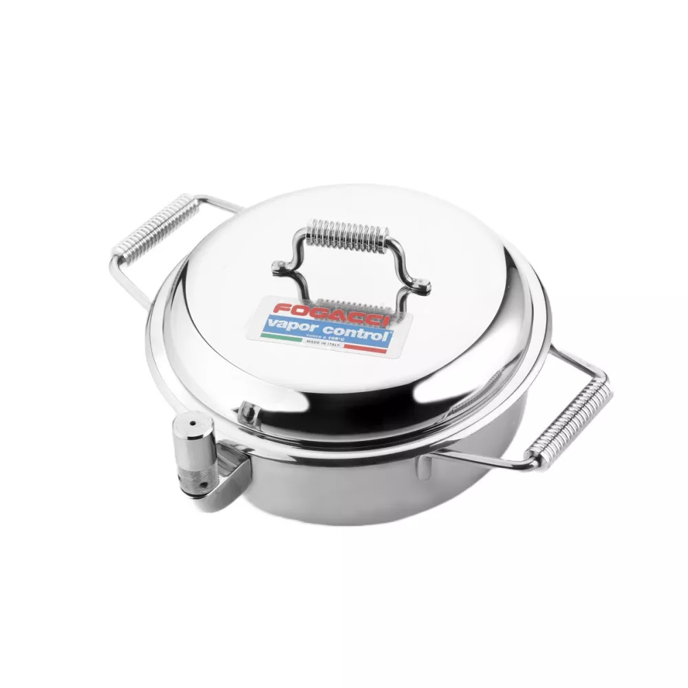 Il sistema brevettato di FOGACCI® vapor control® prevede l'utilizzo di una doppia parete in acciaio inox 18/10 che crea uno spazio vuoto dove si forma il vapore. Grazie ad una speciale valvola, la quantità di vapore e la temperatura all'interno della pentola sono regolate per cuocere gli alimenti in modo delicato e uniforme, senza il rischio di bruciarli. Questo metodo di cottura consente di cuocere gli alimenti senza contatto diretto con la fonte di calore, mantenendo una temperatura costante che non supera mai i 105°C. In questo modo, gli alimenti sono preservati dalle alterazioni del calore e si conservano inalterati i sapori, i principi nutrizionali e i valori nutrizionali. FOGACCI® vapor control® è la scelta ideale per una cucina sana e gustosa, dove la qualità degli alimenti è sempre al primo posto.