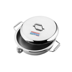 Cesto per cotture al vapore in acciaio inossidabile 18/10 lucido. Utile per chi ama la cucina light; e pratico nell'uso: basta infatti appoggiarlo a qualsiasi contenitore di pari diametro per poter cucinare sia sotto che sopra. Altezza: 9 cm Diametro: 24 cm Codice: SG307
