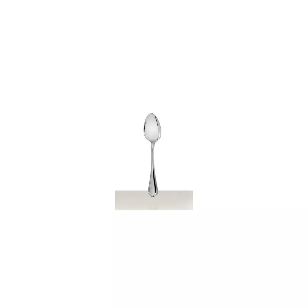 Cucchiaio Espresso Christofle Spatour  Riflettendo le radici del 19 ° secolo, la collezione Spatours, disponibile nel primo catalogo Christofle nel 1862, presenta curve generose, tacchi decorativi e una cresta arrotondata e slanciata comune in stile Luigi XV. MATERIALE • lega argentata DIMENSIONI •: 10 cm