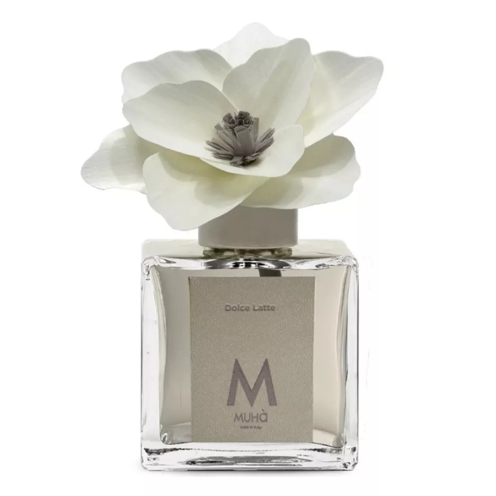 Un esclusivo diffusore d’ambiente che celebra l’incontro tra design italiano e artigianalità. La bottiglia in vetro con collo in zama è completata da una magnolia in legno di betulla realizzata a mano, che diffonde nell’aria fragranze intense e avvolgenti. L’etichetta in ecopelle aggiunge un dettaglio di raffinata sostenibilità, trasformando ogni ambiente in un’oasi di lusso sensoriale.