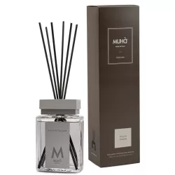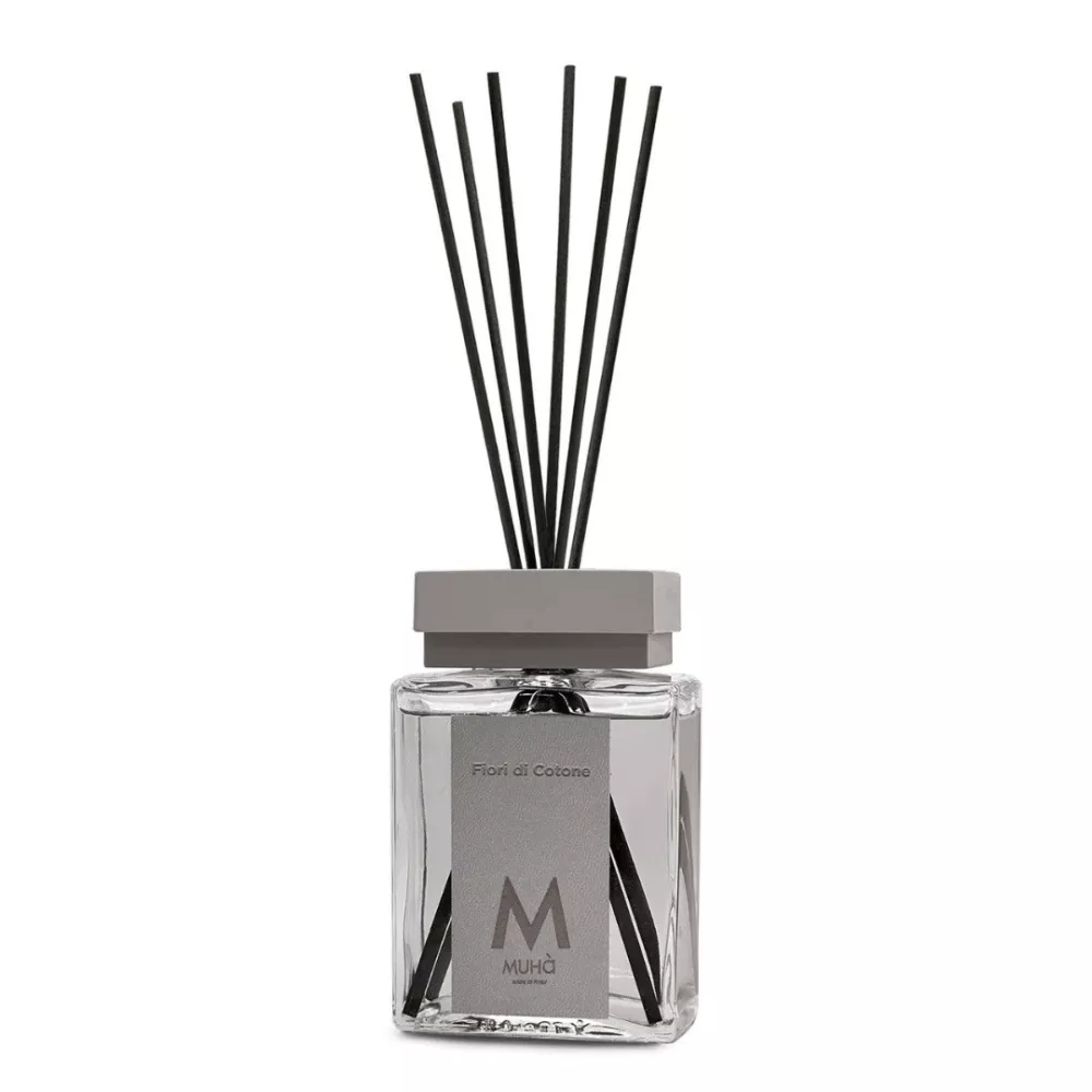 La linea Bastoncino by Muhà incarna l’eccellenza del design italiano, coniugando estetica e funzionalità. La bottiglia in vetro con collo artigianale in zama si arricchisce di un’etichetta in ecopelle, simbolo di pregio e sostenibilità. I bastoncini in fibra diffondono una fragranza raffinata e delicata, capace di trasformare ogni ambiente in uno spazio accogliente e armonioso. La profumazione Fiori di Cotone combina le fresche note di bergamotto con un cuore fiorito di mughetto, rosa, ylang ylang e vaniglia, adagiandosi su un fondo caldo di fave di tonka, ambra e sandalo.