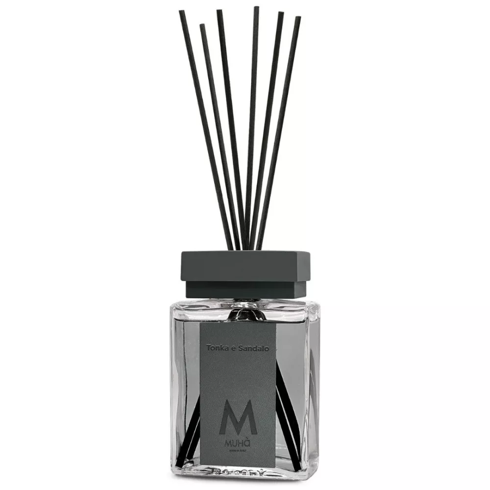 La linea Bastoncino by Muhà esprime l’eccellenza del design italiano, fondendo estetica e funzionalità. La bottiglia in vetro con collo artigianale in zama e l’etichetta in ecopelle testimoniano eleganza e sostenibilità. I bastoncini in fibra diffondono nell’aria una fragranza intensa e sofisticata. La profumazione Tonka e Sandalo rivela un equilibrio affascinante di freschezza e calore, con accordi fruttati, legnosi, ambrati e speziati che donano carattere e avvolgenza a ogni ambiente.