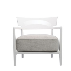 Poltrona Cara Ignifuga, Color Avorio e Beige. Materiale Struttura: Policarbonato Colorato In Massa Materiale Seduta: Imbottito in schiuma poliuretanica ricoperto in tessuto Materiale Terzo: Tessuto: 59% Viscosa, 4% Cotone, 14%Lino, 23% Poliestere Uso: Indoor Dimensioni: A 69 cm, L 68 cm, P 67 cm