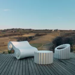 Simbolo assoluto del radical design italiano, la Poltrona Capitello firmata Gufram reinterpreta in chiave ironica ed evocativa la classicità greca. Realizzata interamente a mano in poliuretano morbido, riproduce con sorprendente precisione l’aspetto del marmo, ma accoglie con una morbidezza inaspettata. Rifinita in una luminosa tonalità bianco Partenone con vernice Guflac Ultra, può essere utilizzata sia in ambienti interni che esterni. La tensione tra apparenza e realtà genera stupore: ci si attende la freddezza della pietra, ma si scopre una superficie soffice e sensuale. Esposta in musei internazionali come il Louvre di Parigi e il Metropolitan Museum di New York, Capitello resta un’icona senza tempo del rapporto tra arte, materia e provocazione.