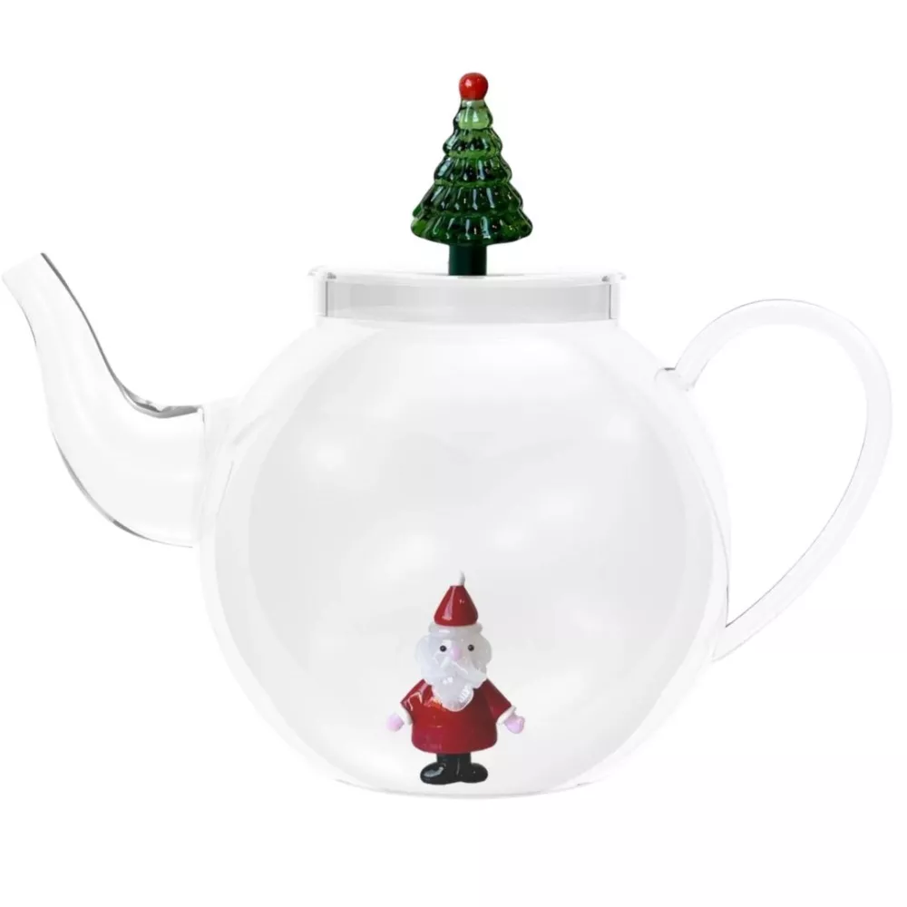 La teiera Christmas Tales di Ichendorf e un piccolo racconto di vetro che celebra la magia delle feste. Realizzata in vetro borosilicato e impreziosita da un coperchio a forma di albero di Natale firmato Alessandra Baldereschi, unisce delicatezza estetica e resistenza quotidiana. La sua presenza porta in tavola un gesto poetico, trasformando il momento del te in un rituale ricco di atmosfera natalizia, suggestione artistica, design narrativo e calore conviviale.