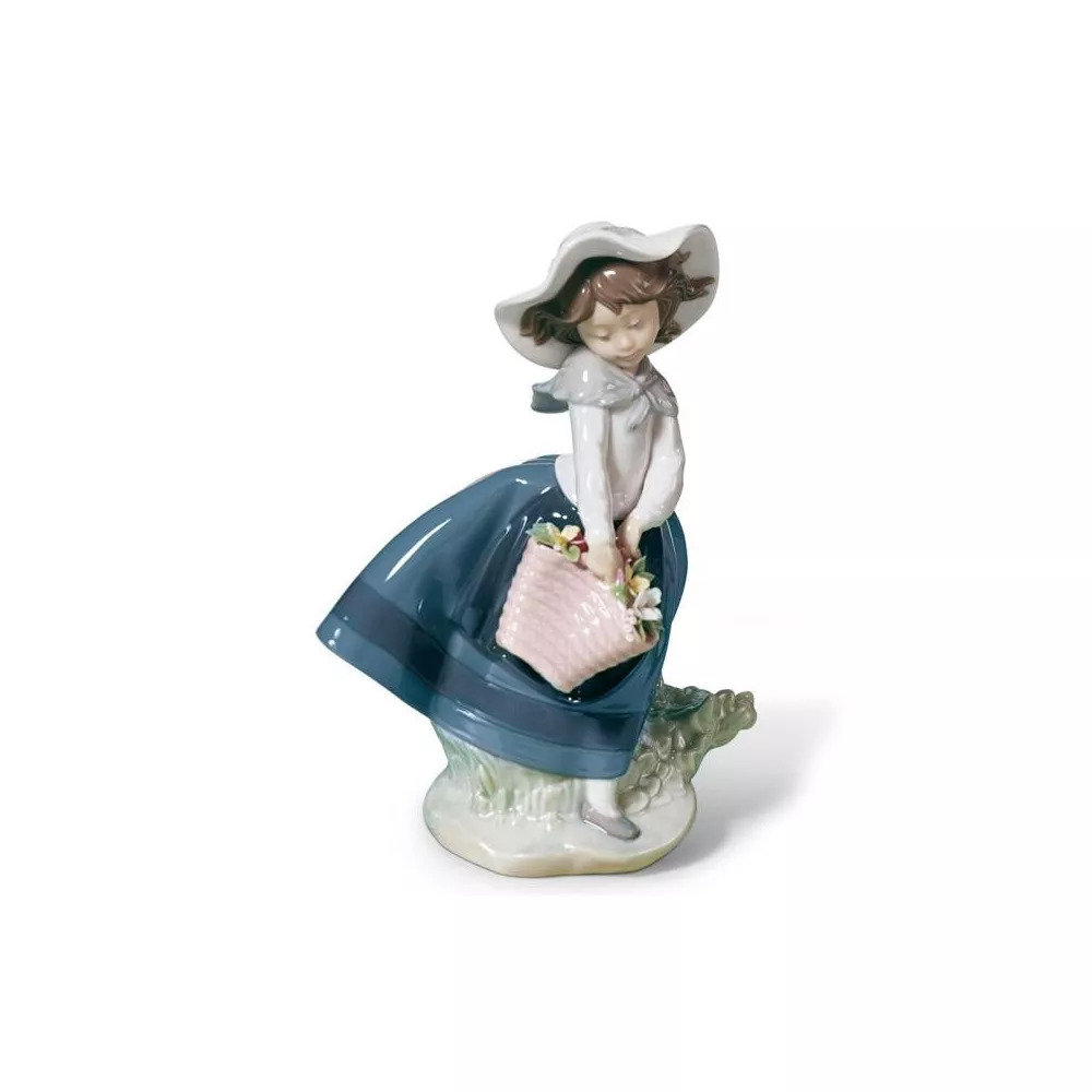 Ragazza con Borsa Articolo 01005222 Dimensioni: 18 x 10 cm Figura realizzata da José Puche, anno 1984 Porcellana decorata a mano