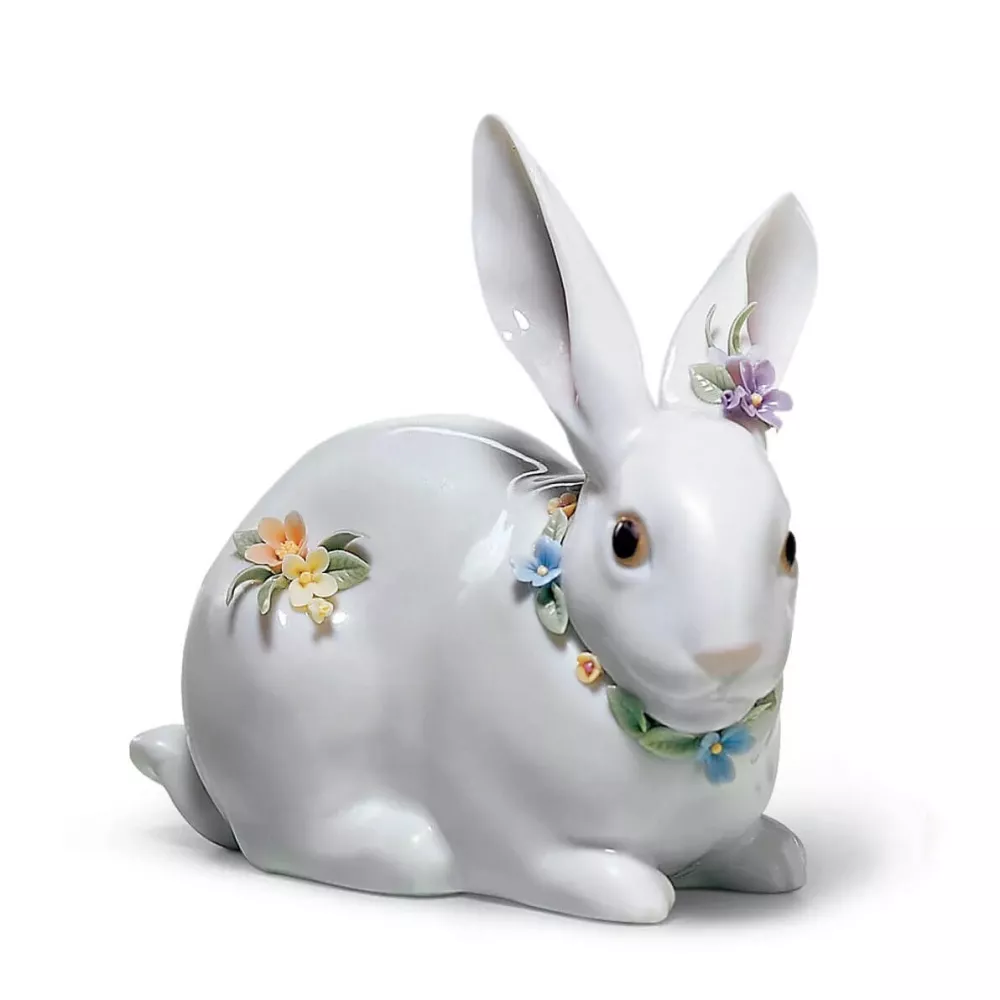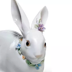 Figurina Coniglio con fiori Articolo 01006098 Dimensioni: H 11, 12 x 7 cm Figura realizzata da Fulgencio García Porcellana decorata a mano