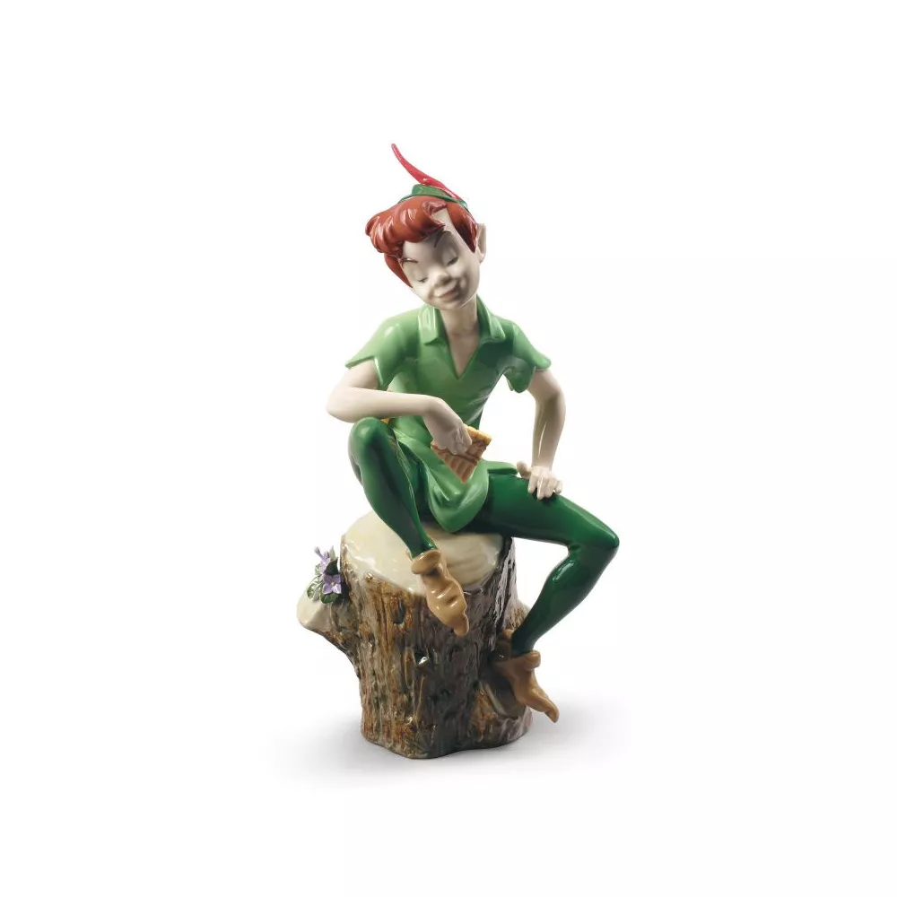 Peter Pan è una figurina di porcellana del personaggio Disney. Il ragazzo che non cresce mai, ha dieci anni e odia il mondo degli adulti. La sua amica fata Tinkerbell va dappertutto con lui. Porcellana con finitura lucida. Decorato nella tradizionale colorazione del personaggio, che è seduto su un tronco d'albero con 3 fiori. Dimensioni: 25 x 13 cm