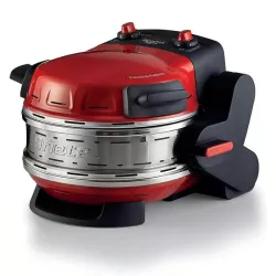 Forno elettrico per due pizze, dotato di due pietre refrattarie con diametro di 32 cm ciascuna e rivestimento antiaderente. Include due termostati indipendenti e offre cinque livelli di cottura. Può raggiungere una temperatura massima di 400°C, perfetto per cuocere due pizze allo stesso tempo. Prodotto brevettato. Colore: rosso. Codice articolo: 0927/00